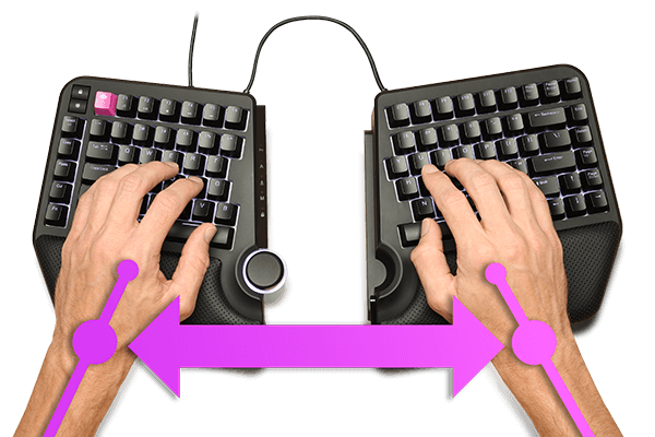 Traditional keyboards anchor your wrists together at an unnatural angle. Queue the wrist pain and fatigue...